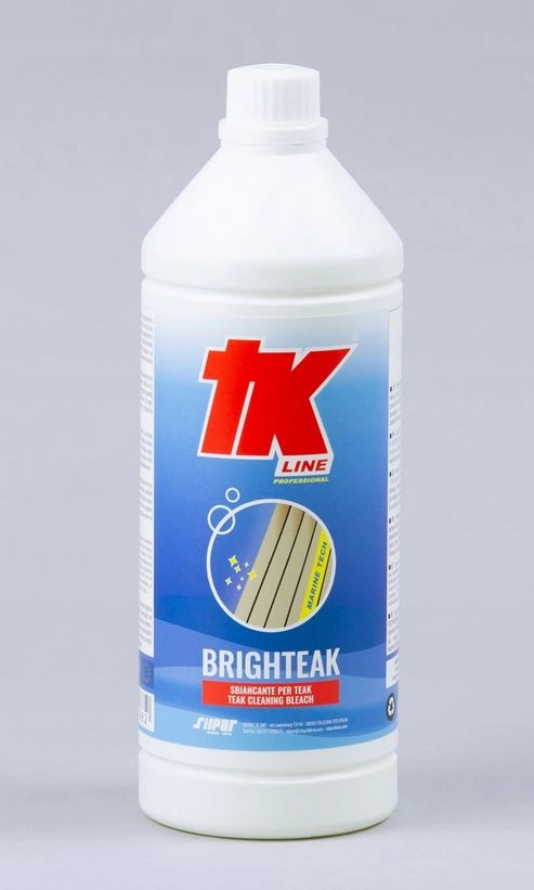 ODSZARZACZ ROZJAŚNIACZ DO DREWNA TEAKu - Środek rozjaśniający do powierzchni z teaku. Tk Line Brighteak rozjaśnia ściemniałe w wyniku oksydacji i promieni UV drewno i przywraca naturalny kolor teaku. Dzięki specjalnej formule jest łagodny dla drewna, jednocześnie silnie rozjaśniając i czyszcząc. W prosty sposób usuwa szare przebarwienie spowodowane utlenieniem i rozjaśnia drewno przywracającemu ponownie piękny, jasny i naturalny kolor. Podkreśla naturalne usłojenie drew