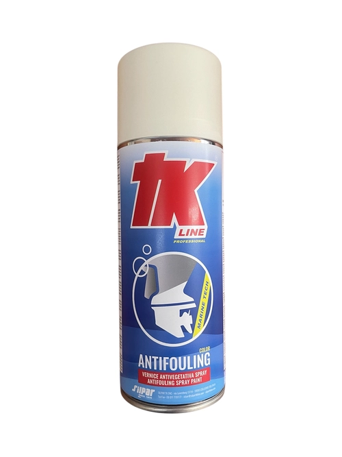 TK LINE ANTIFOULING SPRAY / FARBA PRZECIWPOROSTOWA DO PRZEKŁADNI LUB ŚRUBY SILNIKA- Ochronny spray przeciwporostowy do zabezpieczania przekładni oraz śrub. Bazuje na związkach organicznych, nie zawiera związków cyny i miedzi. Bezpieczny dla aluminium. Jest to tak zwany twardy antifouling, dostosowany do dużych i średnich prędkości.