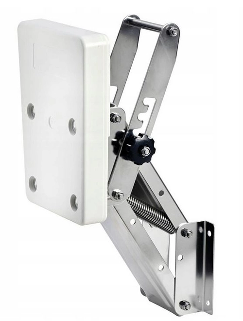 - Bardzo solidny pantograf do silników zaburtowych wykonany z polerowanej stali nierdzewnej, posiadający pięć poziomów regulacji wysokości.