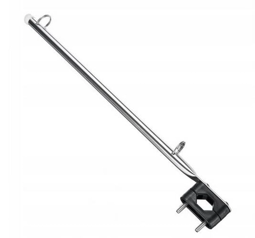 FLAGSZTOK NA RELING - Wykonany ze stali nierdzewnej, uchwyty relingowy z mocnego tworzywa sztucznego. Montowany na reling o grubości od 20 do 26 mm, lub bezpośrednio do pionowej ścianki.
