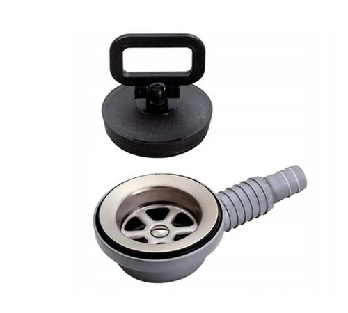ODPŁYW ZLEWU KĄTOWY NA WĄŻ 20 - 25mm - Odpływ zlewu wykonany z PVC. Do zastosowania na przewód o średnicy 20 lub 25 mm. Kolanko 90 stopni. Sitko nierdzewne o średnicy 70 mm. Gumowy korek w komplecie.