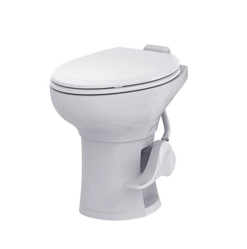 TOALETA JACHTOWA SEAFLO ZE SPŁUCZKĄ NOŻNĄ - to wysokiej klasy toaleta grawitacyjna z pedałem nożnym, łącząca komfort domowy z trwałością konstrukcji. Wyposażona w ceramiczną miskę, miękko opadającą deskę (soft-close) i system spłukiwania nożnego, gwarantuje czystość i wygodę w każdych warunkach podróży. Dzięki kompaktowym wymiarom idealnie sprawdza się w kamperach, przyczepach kempingowych i jednostkach pływających. Spłukiwanie nogą eliminuje potrzebę dotykania toalety rękami, co zwiększa higienę i wygodę użytkowania. System grawitacyjny z trójdziałkowymi dyszami zapewnia skuteczne, równomierne rozprowadzenie wody, a regulowany przepływ pozwala oszczędzać wodę w trasie
