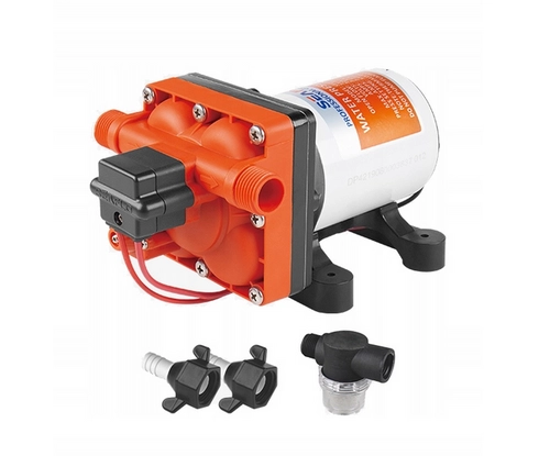 - Wyjątkowo wydajna pompa ciśnieniowa do wody czystej, idealna do zastosowania w kamperach, przyczepach kempingowych, łodziach, jachtach, food truckach oraz domkach mobilnych.