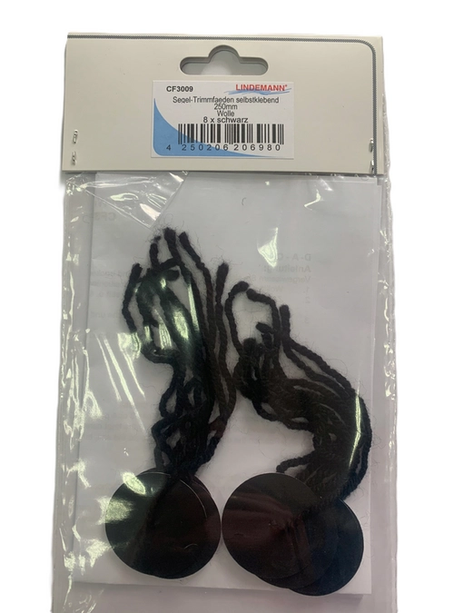 Profesjonalne ICKI do Żagli - 4 pary "icków" z krążkami dakronowymi - samoprzylepnymi. Komplet 8 icek: wełniane nitki o długości 25cm z naklejkami odpornymi na słoną wodę i silny wiatr w kolorze czarnym. Icki pomagają w trymie żagli, szczególnie na kursach ostrych.