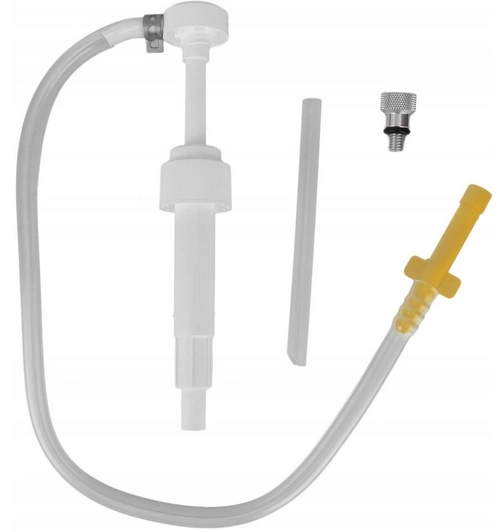 UNIWERSALNA POMPKA DO OLEJU PRZEKŁADNIOWEGO GEAR LUBE PUMP - Pompka do wymiany oleju przekładniowego w spodzinie silnika zaburtowego lub stacjonarnego na łodziach i jachtach. Pompka nakręcana na butelkę do oleju służy do wtłoczenia oleju przekładniowego do spodziny silnika. Końcówka rurki jest zakończona gwintem, to rozwiązanie zapewnia całkowitą szczelność podczas wymiany. W komplecie znajduje się rurka i adapter do gwintu metrycznego. Pompka idealna do butelek 1L oraz ćwierć galona (28mm gwint/korek)