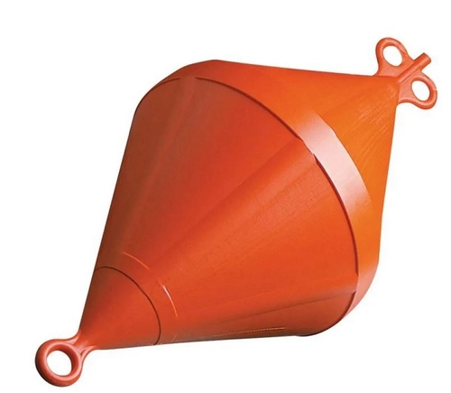 Boja cumownicza wykonana z wytrzymałego tworzywa. W dolnej części umieszczone jest ucho pojedyncze, a w górnej ucho podwójne.
