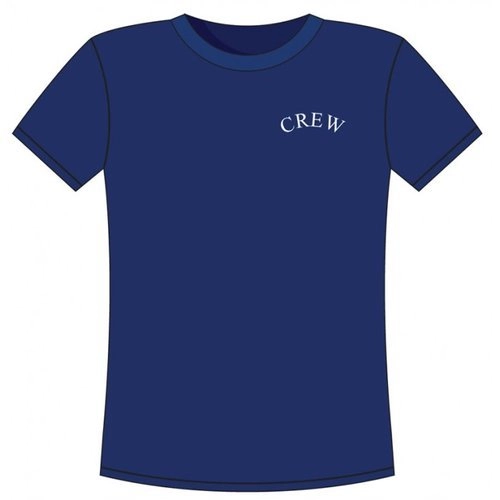 Żeglarski t-shirt w kolorze granatowym z napisem "CREW". Uszyty z mięsistej, w 100% czystej bawełny. Doskonały pomysł na prezent lub na wyposażenie zgranej załogi wesołych żeglarzy.