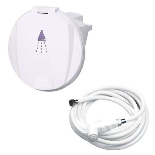 Kompletny prysznic pokładowy z końcówką i przewodem 3 m, chowanymi w zamykanym schowku. Wykonany w z tworzywa sztucznego ABS i PVC (wąż) w kolorze białym. Zaprojektowany i wyprodukowany we Włoszech.