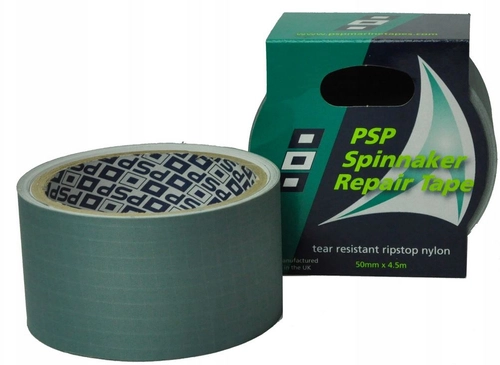 - Samoprzylepna taśma z materiału nylonowego w kolorze szarym, do wykonywania drobnych napraw spinnakera 50mmx4,5m.