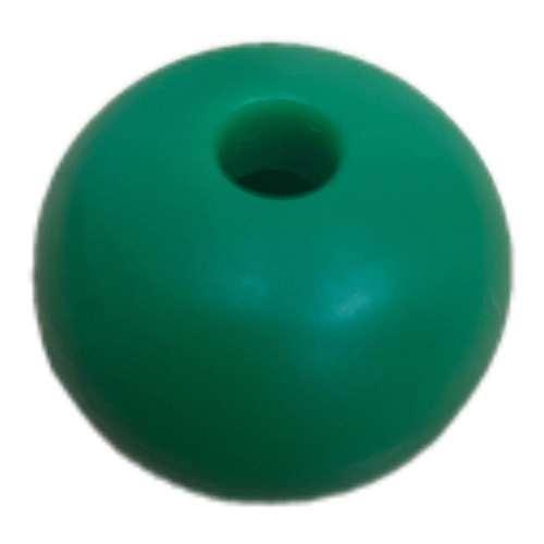 Plastikowa kulka - stoper na linę o średnicy maks. 7 mm, w kolorze zielonym. Idealne rozwiązanie do blokowania końcówek lin w otworach lub do oznaczania różnych lin na pokładzie.