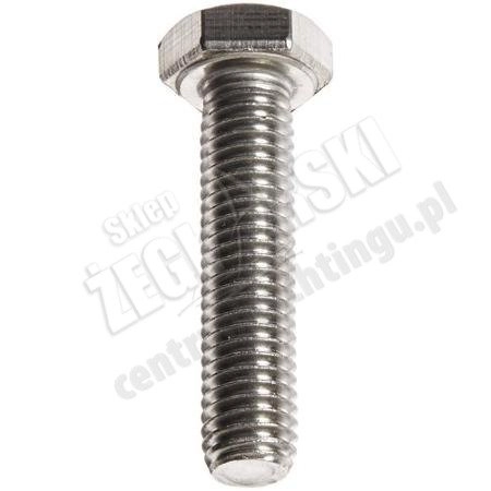 Śruba nierdzewna z łbem sześciokątnym i z gwintem na całej długości. Wykonana ze stali A2.