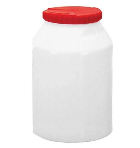 Hermetyczny pojemnik do przechowywania produktów wrażliwych na wilgoć, zapachy lub różnego rodzaju zanieczyszczenia. Wykonany z białego tworzywa plastikowego. Czerwona nakrętka.