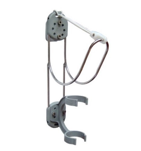 Wieszak koła ratunkowego i pławki. Wykonany ze stali nierdzewnej i wytrzymałego plastiku, odpornego na wodę morską oraz promienie UV. Do zabezpieczenia koła ratunkowego jest specjalna gumka z plastikowym karabińczykiem. Uchwyt może być zamontowany bezpośrednio na burcie, nadbudówce lub na relingu.