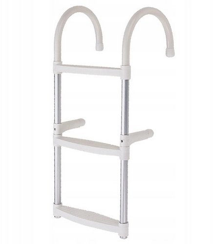 Trzystopniowa lekka drabinka rufowa wykonana z anodyzowanego aluminium. Wyposażona w antypoślizgowe stopnie z tworzywa plastikowego oraz elementy dystansowe, które pozwalają dopasować drabinkę do większości pokładów. Haki zaczepowe rozkładane na płasko dla wygodniejszego przechowywania. Całość odporna wodę morską i promieniowanie UV.