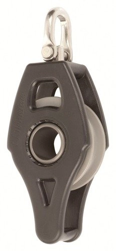 Łożyskowany pojedynczy bloczek 40 mm z krętlikiem i szeklą. Dzięki zastosowaniu otwartej osi aluminiowej z dużym otworem bloczek jest dużo lżejszy w porównaniu ze stalowym. Solidna jednorodna obudowa z kompozytu jest odporna na uderzenia i przecinanie, a nylonowa rolka uformowana w sposób zapewniający optymalne ułożenie liny