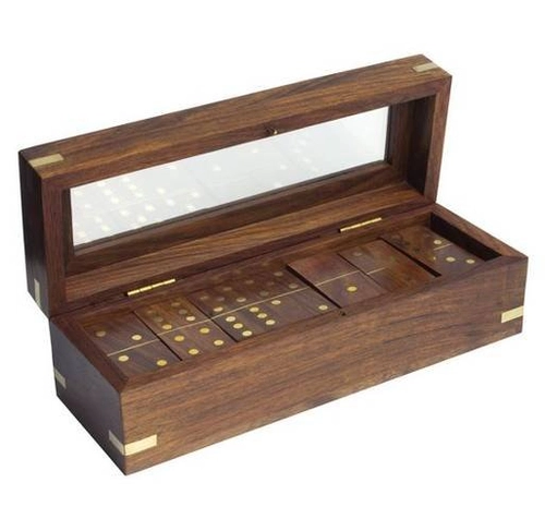 GRA DOMINO - pełny zestaw do gry w domino w pięknej, lakierowanej drewnianej skrzynce.