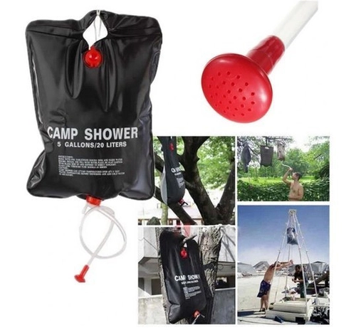 Prysznic turystyczny, ze zbiornikiem 20 l z czarnego PVC, w którym woda jest nagrzewana promieniami słonecznymi. Wyposażony w zawór oraz miękki przewód z końcówką rozpylającą. W zestawie sznur z haczykiem do zawieszenia oraz rurka usztywniająca. Doskonale sprawdza się podczas rejsów żeglarskich, wypraw survivalowych i biwakowych.