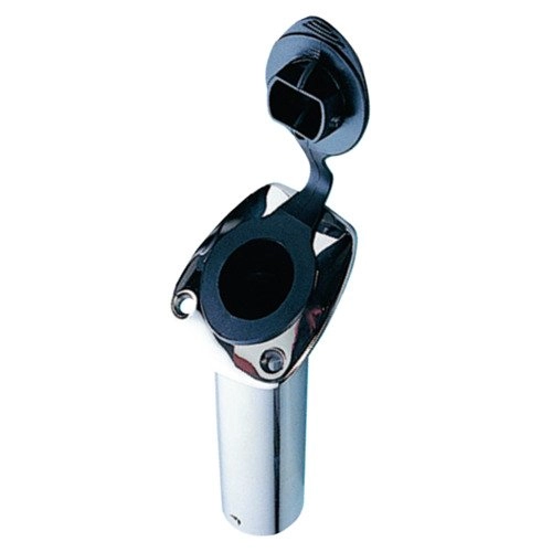 Pokładowy uchwyt do wędki wykonany ze stali nierdzewnej i zaopatrzony w plastikową zatyczkę w kolorze czarnym.
