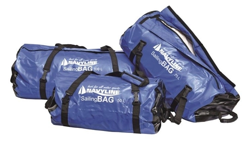 Wodoodporna torba żeglarska niemieckiej firmy NAVYLINE. Wykonana z bardzo mocnego tworzywa PVC, z klejonymi szwami oraz wzmocnieniami w kluczowych miejscach, a także zaopatrzona w zamknięcie na dwustronny suwak zabezpieczone podwójną klapą z rzepami po trzech stronach - gwarantuje całkowitą odporność wnętrza na chlapiącą wodę, kurz, piasek i inne niekorzystne czynniki. Wyposażona w szerokie odpinane paski o regulowanej długości, połączone uchwytem zamykanym na rzep, może być noszona na ramieniu lub na plecach. Dwa mocne uchwyty boczne ułatwiają przenoszenie ciężkiej torby na krótkich dystansach. "My Sailing Bag" - to nazwa bardzo adekwatna, chociaż ta torba może być przydatna nie tylko dla żeglarza. Dostępna w trzech rozmiarach: 50 l, 75 l i 100 l.