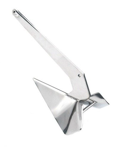 Kotwica typu DELTA o wadze 10 kg, wykonana z błyszczącej stali kwasoodpornej. Najlepiej sprawdza się na dnie piaszczystym, mulistym i żwirowym, gdzie szybko zagłębia się w podłoże. Wyposażona w specjalny otwór do mocowania bojki wskazującej położenie kotwicy. Zalecana do łodzi o maksymalnej długości 11 m.