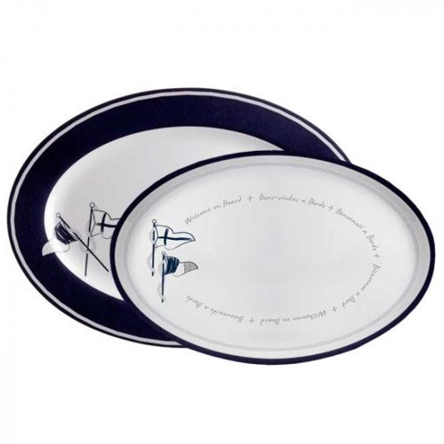 - Zestaw dwóch owalnych półmisków, wykonanych z najwyższej jakości melaminy i ozdobionych stylowymi motywami marynistycznymi z napisem WELCOME ON BOARD. Produkt hiszpańskiej firmy MARINE BUSINESS.