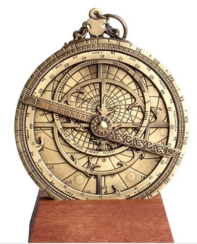 Reprodukcja pięknego i funkcjonalnego przyrządu astronomicznego z epoki renesansu, który w tamtych czasach stanowił swego rodzaju "komputer" osobisty, służący do określania czasu na podstawie położenia Słońca i gwiazd. To banalne dziś pytanie kiedyś, kiedyś było wielkim wyzwaniem. Dzięki niemu można było określać czas zjawisk np. takich jak wschody i zachody słońca, umożliwiało określanie pozycji gwiazd i kierunków. Służyło do tworzenia wielu zaawansowanych obliczeń. Astrolabium odtwarza mapę nieba 3D na płaskiej powierzchni. Było także urządzeniem nawigacyjnym. Jego historia zaczęła się ponad 2000 lat temu. Przez stulecia rozwijano wiedzę i budowano coraz bardziej złożone urządzenia. Wielka w tym zasługa uczonych arabskich. Źródła donoszą, że dzięki temu urządzeniu w średniowieczu stworzono np. bardzo dokładną mapę Bagdadu. To właśnie dzięki nim w XII w. astrolabium zawitało do Europy. Do około roku 1650 był to najpowszechniejszy instrument astronomiczny, który potem został zastąpiony przez instrumenty bardziej precyzyjne.