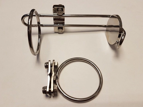 Dwuczęściowy UCHWYT BOSAKA NA WANTĘ wykonany z polerowanej stali nierdzewnej.