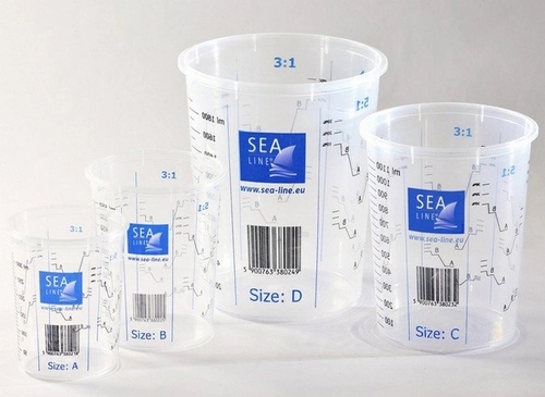 - Kubki plastikowe z podziałką ułatwiają dozowanie materiału lakierniczego.