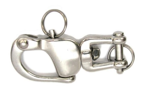 - Snapszekla / szekla zatrzaskowa z krętlikiem i szeklą wykonana z kutego pręta ze stali kwasoodpornej A4.