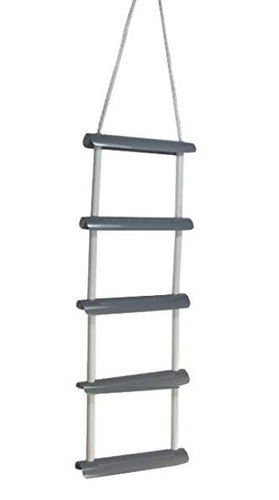 Lekka drabinka sznurowa 5-stopniowa z mocnymi linami propylenowymi. Stopnie wykonane z wytrzymałego tworzywa w kolorze szarym. Dzięki rurkowym dystansom na linach, drabinka jest bardziej stabilna i zachowuje kształt. Łatwe składanie i rozkładanie, wygodne przechowywanie.