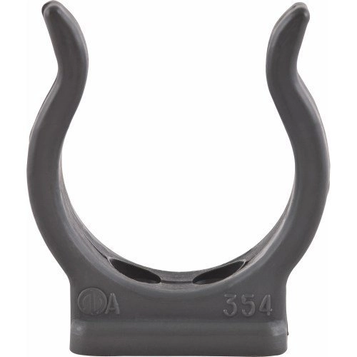 Uchwyt do bosaka z drzewcem o średnicy 32 mm, wykonany z elastycznego tworzywa nylonowego w kolorze ciemno szarym i zaopatrzony w dwa otwory montażowe.