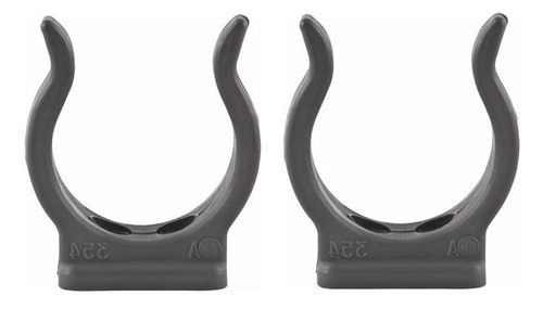 Dwie sztuki uchwytów do bosaka z drzewcem o średnicy 25 mm, wykonanych z elastycznego tworzywa nylonowego w kolorze ciemno szarym i zaopatrzonych w dwa otwory montażowe.