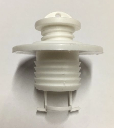 Korek spustowy wkręcany z okrągłym gniazdem, wykonany z mocnego PVC, odpornego na działanie wody morskiej i promieni UV. Korek ma zabezpieczenie przed wypadaniem z gniazda oraz oczko, do którego można przywiązać troczek mocujący. Mocowanie kołnierza gniazda na wcisk z dodatkowym zabezpieczeniem czterema wkrętami (wkręty nie są dostępne w zestawie).