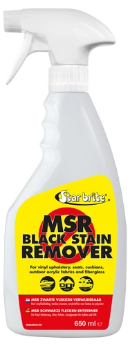 - MSR BLACK STAIN REMOVER amerykańskiej firmy STAR BRITE to skuteczny i łatwy w użyciu środek do usuwania osadów i plam, m.in. z pleśni, powstających na winylu, żelkocie, plastiku oraz oraz na powierzchniach lakierowanych.