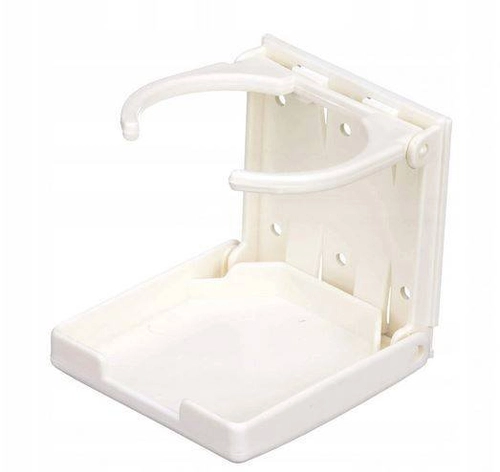 UCHWYT SKŁADANY NA KUBEK, BUTELKĘ - Praktyczny uchwyt na kubek lub butelkę, wykonany z trwałego tworzywa ABS. Uchwyt jest składany, dzięki czemu gdy nie jest nam potrzebny, możemy go złożyć i będzie wyglądał jak element pokładu. Montowany do każdej pionowej ścianki na 4 wkręty ( w zestawie )