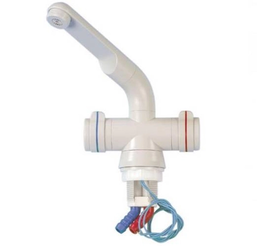 - Kran podwójny wykonany z PCV. Idealny do jachtu lub kampera. Jeden otwór montażowy.