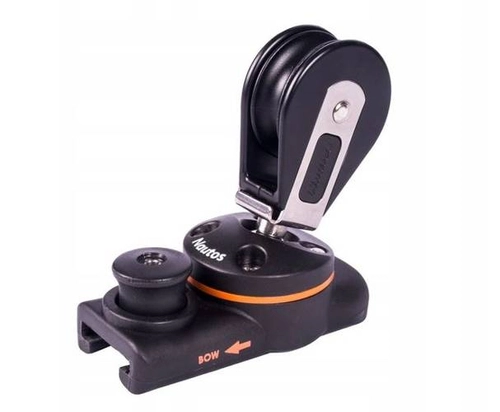 WÓZEK SZOTOWY Z BLOCZKIEM NA SZYNĘ "T" 25mm - Wózek zaopatrzony w innowacyjny krętlik, pin blokujący oraz bloczek łożyskowany HOLT / NAUTOS - 39mm. Bloczek regatowy - łożyskowany za pomocą kulek ze stali nierdzewnej. Zaprojektowany do łodzi regatowych i może być używany w każdych warunkach i pod dużym obciążeniem.