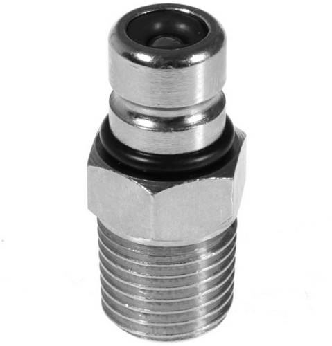 Złączka męska do linii paliwowych w silnikach zaburtowych z gwintem, do montażu zamiast króćca przy zbiorniku paliwa. Kompatybilna z silnikami Suzuki i Chrysler. Pasuje do żeńskiej złączki NR 31950. Dzięki złączce możliwe jest szybkie dopinanie i odpinanie linii paliwowej, np. żeby zabrać zbiornik do tankowania.