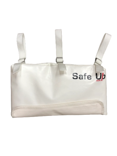 DRABINKA EMERGENCY NA RELING - Drabinka bezpieczeństwa „SafeUp” ma 3 pętle, które można mocno przymocować do relingu łodzi i umieścić za burtą. Po rozłożeniu zapewnia 5 stopni ze stabilnym oparciem dla użytkownika, aby łatwo wejść na pokład. Jest lekka, wodoodporna i wykonana z wytrzymałej tkaniny, aby wytrzymać działanie promieni słonecznych i surowego środowiska morskiego. Uwalnia się ją poprzez otworzenie pokrowca, który zamykany jest na rzep.