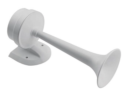 SYGNAŁ DŹWIĘKOWY POJEDYNCZY BIAŁY 74306 BLISTER - Pojedynczy sygnał dźwiękowy (klakson) membranowy wykonany z tworzywa sztucznego, przeznaczony do małych jednostek. Mocowany na 2 śruby (rozstaw 5cm). Klakson odporny na wodę i promienie UV.