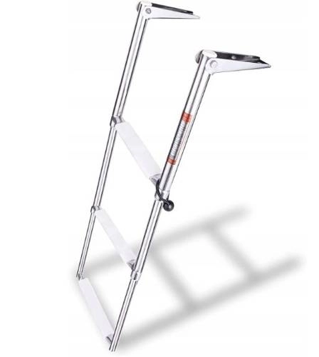 DRABINKA TELESKOPOWA 3 STOPNIOWA NA JACHT LUB MOTORÓWKĘ - Wysokiej jakości rozkładana - trzystopniowa drabinka, wykonana ze stali nierdzewnej ( polerowanej ) A4 do jachtu, łodzi lub motorówki. Dla poprawy bezpieczeństwa i komfortu, białe stopnie wyposażone zostały w antypoślizgowe nakładki z tworzywa.