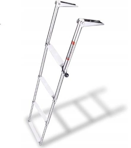 DRABINKA TELESKOPOWA 4 STOPNIOWA NA JACHT LUB MOTORÓWKĘ - Wysokiej jakości rozkładana - trzystopniowa drabinka, wykonana ze stali nierdzewnej ( polerowanej ) A4 do jachtu, łodzi lub motorówki. Dla poprawy bezpieczeństwa i komfortu, białe stopnie wyposażone zostały w antypoślizgowe nakładki z tworzywa.