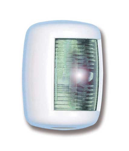 Lampa nawigacyjna zielona 112,5 stopnia wykonana z polikarbonatu. Spełnia normę wodoodporności IP56. Przeznaczona do jednostek długości do 12 m.