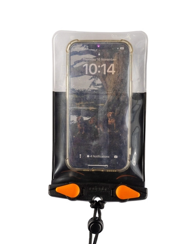 UWAGA! W przypadku niektórych ultrapłaskich urządzeń i przedmiotów (np. iPhone), skutecznym sposobem na zwiększenie objętości będzie włożenie do wnętrza futerału kawałka gąbki lub złożonych w kostkę chusteczek papierowych. Najprostsza metoda na skontrolowanie pływalności to próba zanurzenia np. w umywalce lub naczyniu wypełnionym wodą. Przed każdym użyciem należy skontrolować szczelność posiadanego futerału.