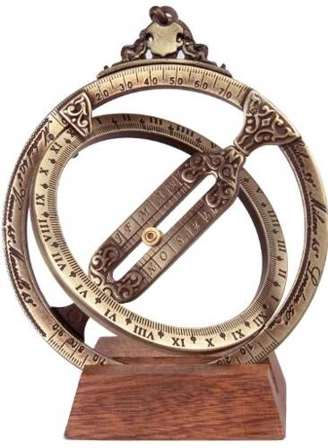 Zegar słoneczny - pierścienie astronomiczne H21 - Uniwersalny zegar słoneczny - do określania czasu we wszystkich szerokościach geograficznych. Jeden z najbardziej wszechstronnych zegarów słonecznych XVII i XVIII w. Poza funkcjonalnością, zegar słoneczny wyróżnia się nietypową formą pierścieni astronomicznych. Jest to gustowna i niezwykle oryginalna ozdoba na biurko lub komodę. Niniejszy zegar słoneczny sprawdzi się jako wyszukany prezent dla inżyniera, miłośnika astronomii, żeglarza i marynarza.