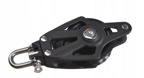 BLOK POJEDYNCZY Z ZACZEPEM 45mm z SZEKLĄ i KRĘTLIKIEM - Wykonany z kompozytu i stali nierdzewnej. Krętlik po usunięciu blokady