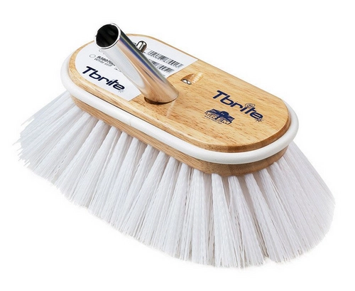- Szczotka TBRITE o mocnym twardym włosiu w drewnianej oprawie, przeznaczona do czyszczenia np. powierzchni stalowych o dużym stopniu zabrudzenia (kuter rybacki).