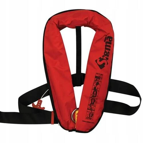 KAMIZELKA PNEUMATYCZNA SIGMA 170N - Pneumatyczna kamizelka ratunkowa, przeznaczona dla dorosłych. Uruchamiana jest automatycznie po zanurzeniu w wodzie lub ręcznie przez pociągnięcie rączki wychodzącej od mechanizmu spustowego. Rozmiar uniwersalny z możliwością łatwego dopasowania obwodu klatki piersiowej w zakresie 70-150 cm. Kamizelka jest zapinana na solidną klamrę, posiada gwizdek i ucho do lifeliny. W komplecie zestaw automatycznego napełniania z nabojem CO2 (33gr) + przewiewny futerał zapinany na zamek. Kamizelka charakteryzuje się wysoką jakością wykonania.
