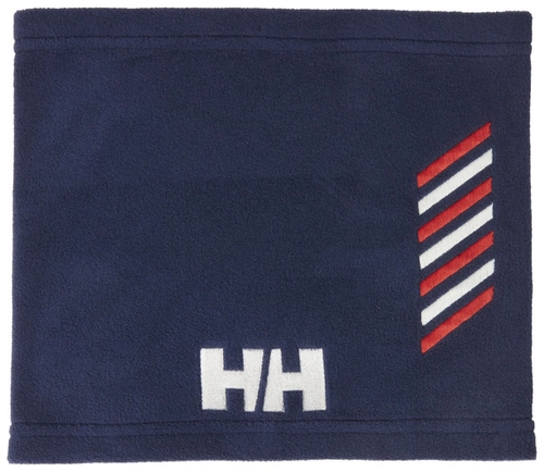 - HELLY HANSEN WORLD CUP NECK WARMER - ciepła opaska polarowa na szyję, tzw. komin, ozdobiona haftem z dużym logo HH i charakterystycznymi paskami w kolorach białym i czerwonym.