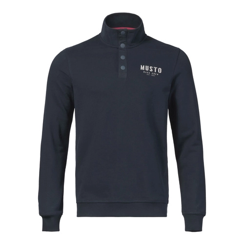 BLUZA MĘSKA MUSTO MARINA 1/2 SNAP SWEAT 2.0 - męska bluza bawełniana, która stanowi doskonałe połączenie elegancji i komfortu oraz wyróżnia się nowoczesnym designem i dbałością o detale. Uszyta z wysokiej jakości mięsistego dżerseju bawełnianego o grubej i mięsistej strukturze. Wysoki kołnierz oraz mankiety i dół bluzy zakończone ściągaczową dzianiną zapewniają dobre przyleganie do sylwetki oraz utrzymują ciepło. Zapięcie na stylowe cztery napy pod szyją ułatwia zakładanie i zdejmowanie, a także stanowi dodatkową ozdobę. Dzięki swojemu wyjątkowemu stylowi, Musto Musto Marina 1/2 Snap Sweat doskonale sprawdzi się zarówno na co dzień, jak i podczas bardziej wyjątkowych okazji. Świetnie komponuje się z jeansami lub spodniami chino i zawsze prezentuje się z klasą.